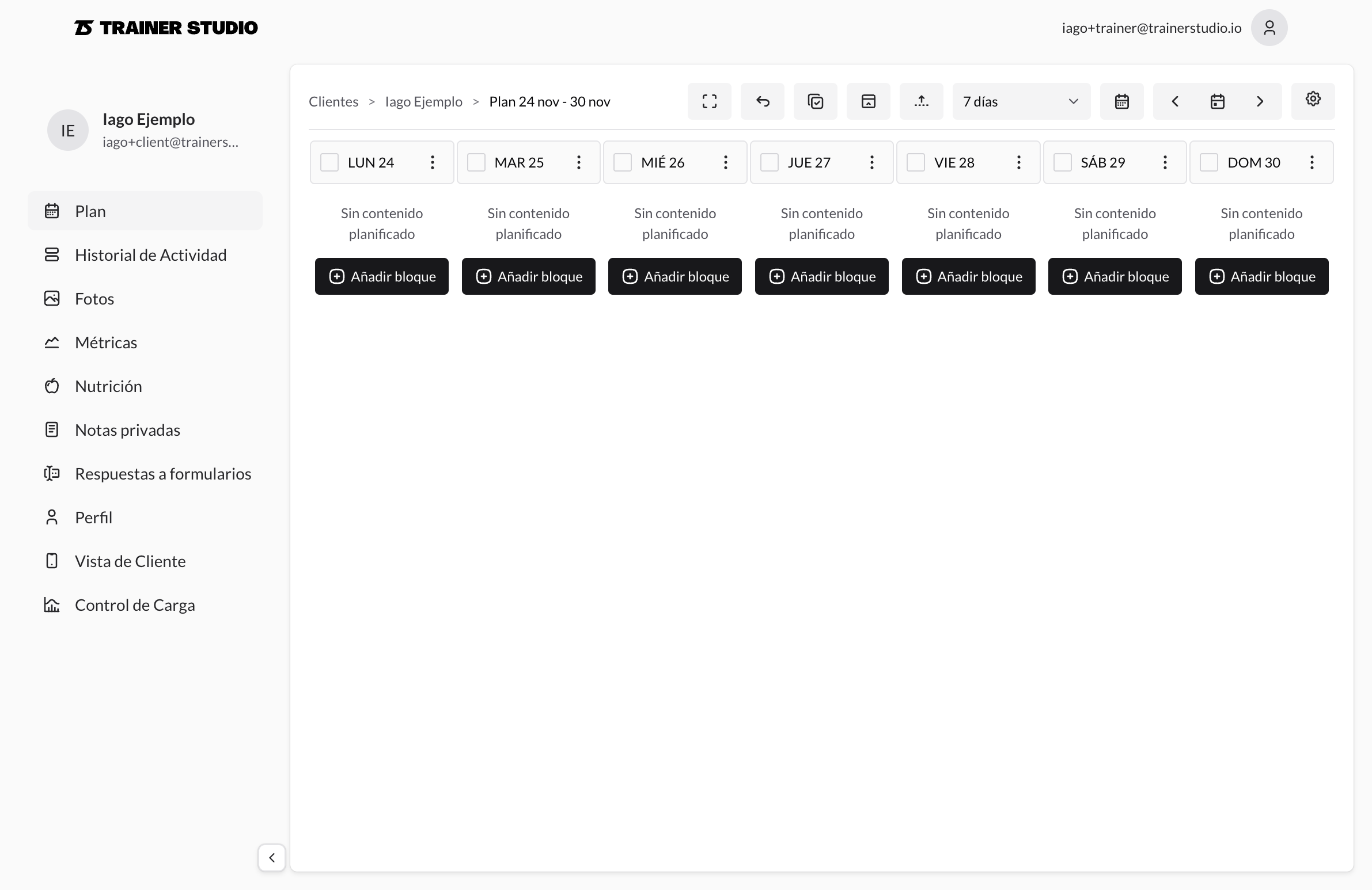 💡 Recuerda: Para editar la planificación, debes volver al panel de entrenador. Recarga la vista después de hacer cambios para verlos reflejados.